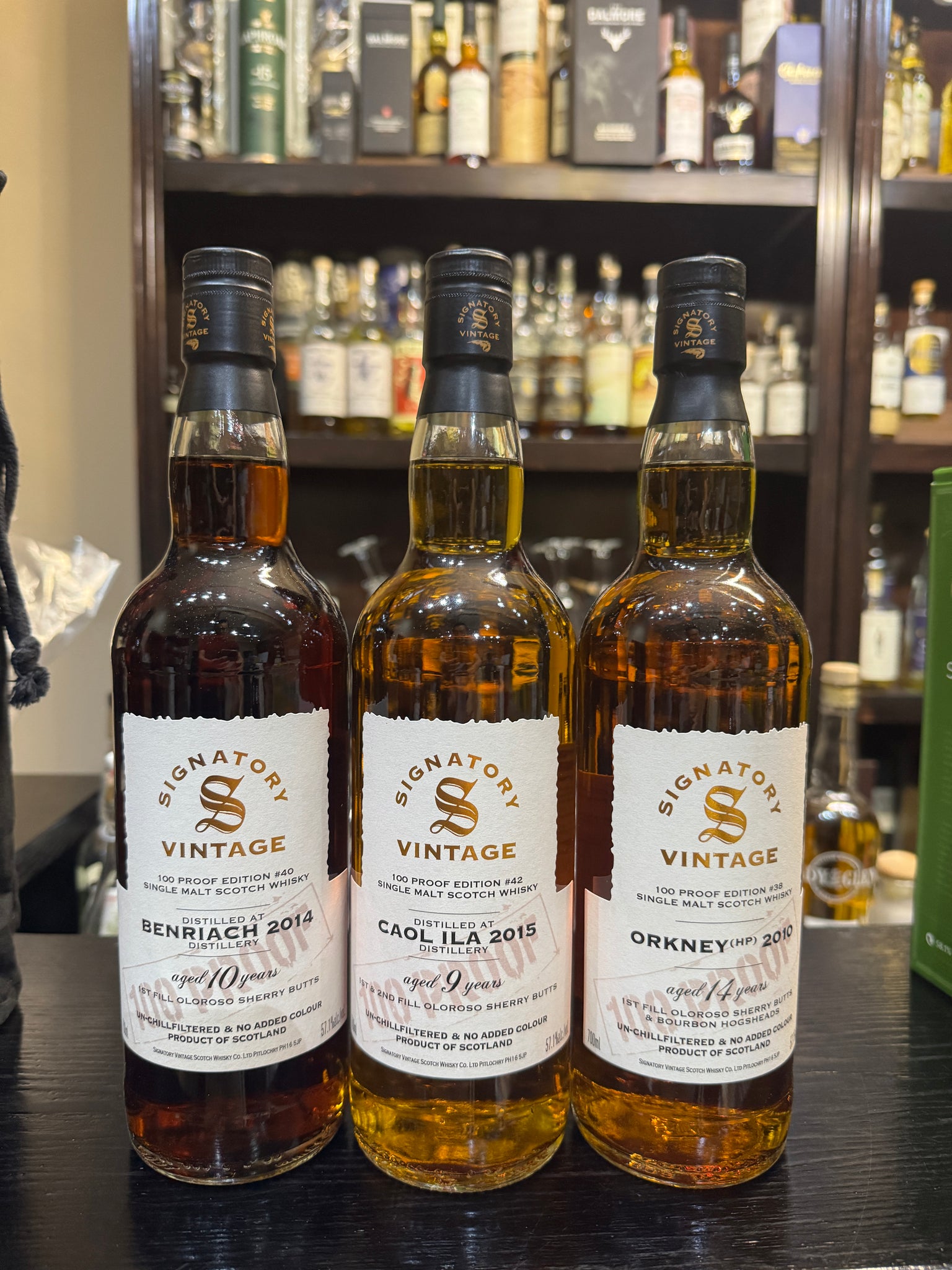 A small batch Benriach 2014 10-year-old Speyside single malt whisky bottled in 2025 by independent bottlers Signatory Vintage for their 100-Proof Editions. This 10-year-old Benriach 2014 came from a small batch of first fill Oloroso sherry butts and weighs in at the traditional 57.1%, equivalent to 100-Proof in the old UK imperial system. |