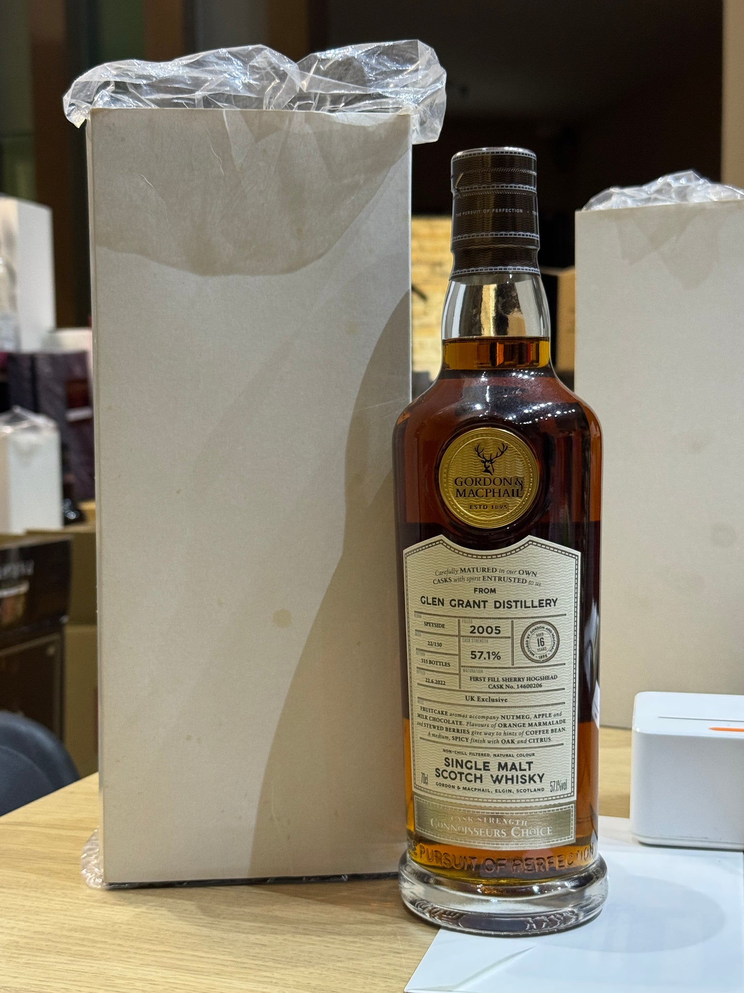 This Glen Grant 2005 was matured in a single sherry hogshead for 16 years before being bottled as part of Gordon & MacPhail's Connoisseurs Choice range. It has aromas of fruitcake, apple and milk chocolate on the nose, with orange marmalade, strawberry and coffee the palate.